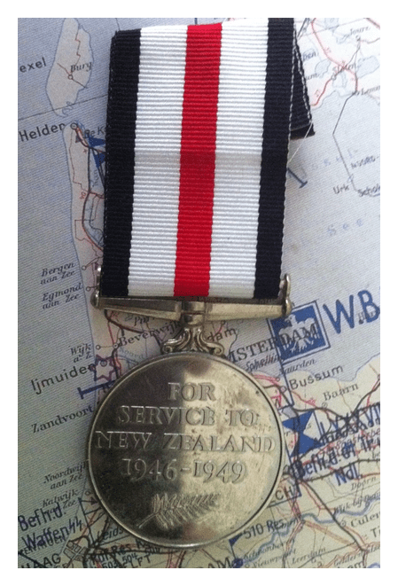 This is a French medal awarded to all participants in recognised formations, fitted with a range of bars depending on the type and theatre of service. In this case the bar is “Autriche” for participation in operations to liberate Austria from Nazi rule. This bar was an unofficial one, but one that was tolerated by the authorities.
