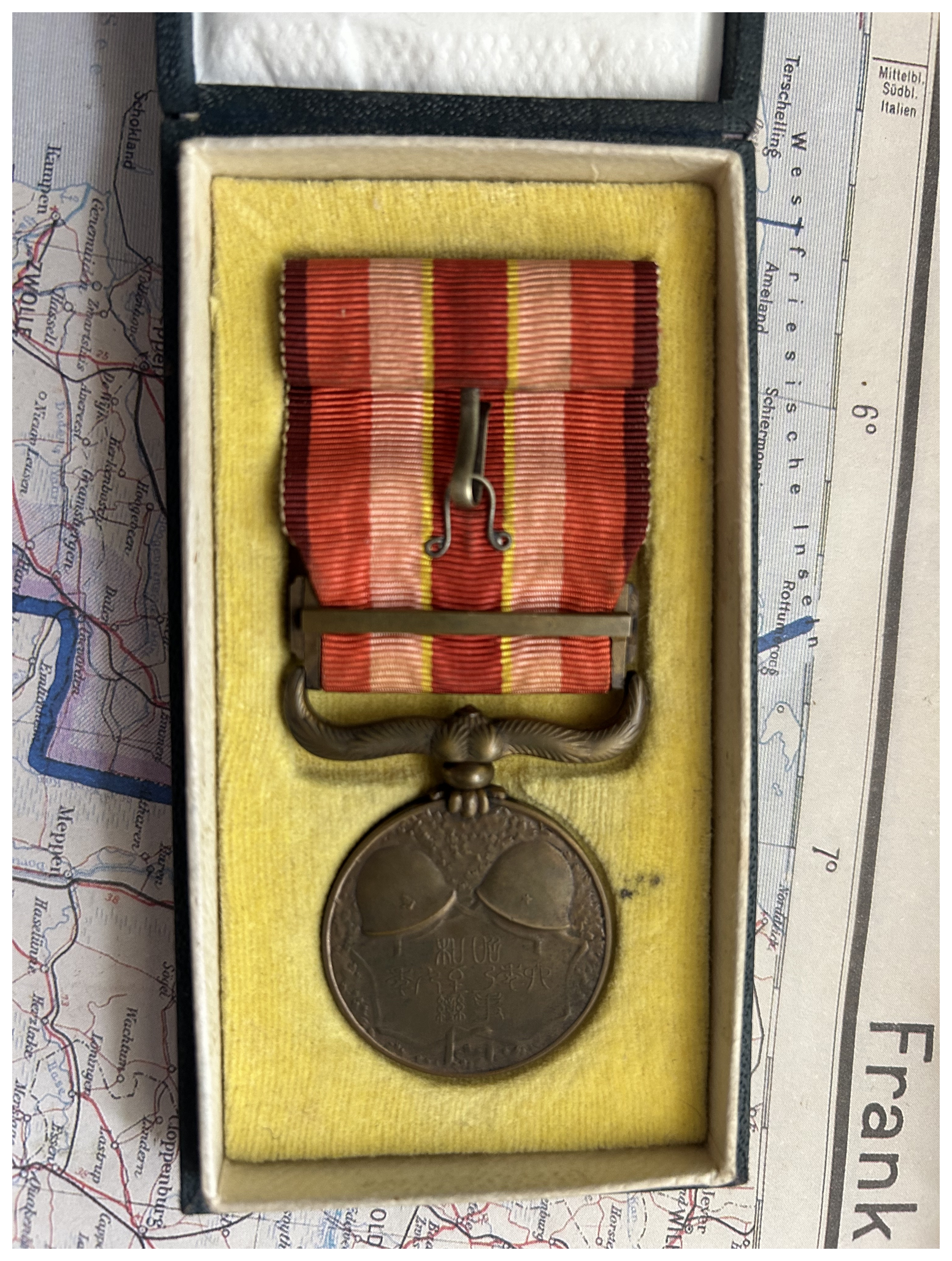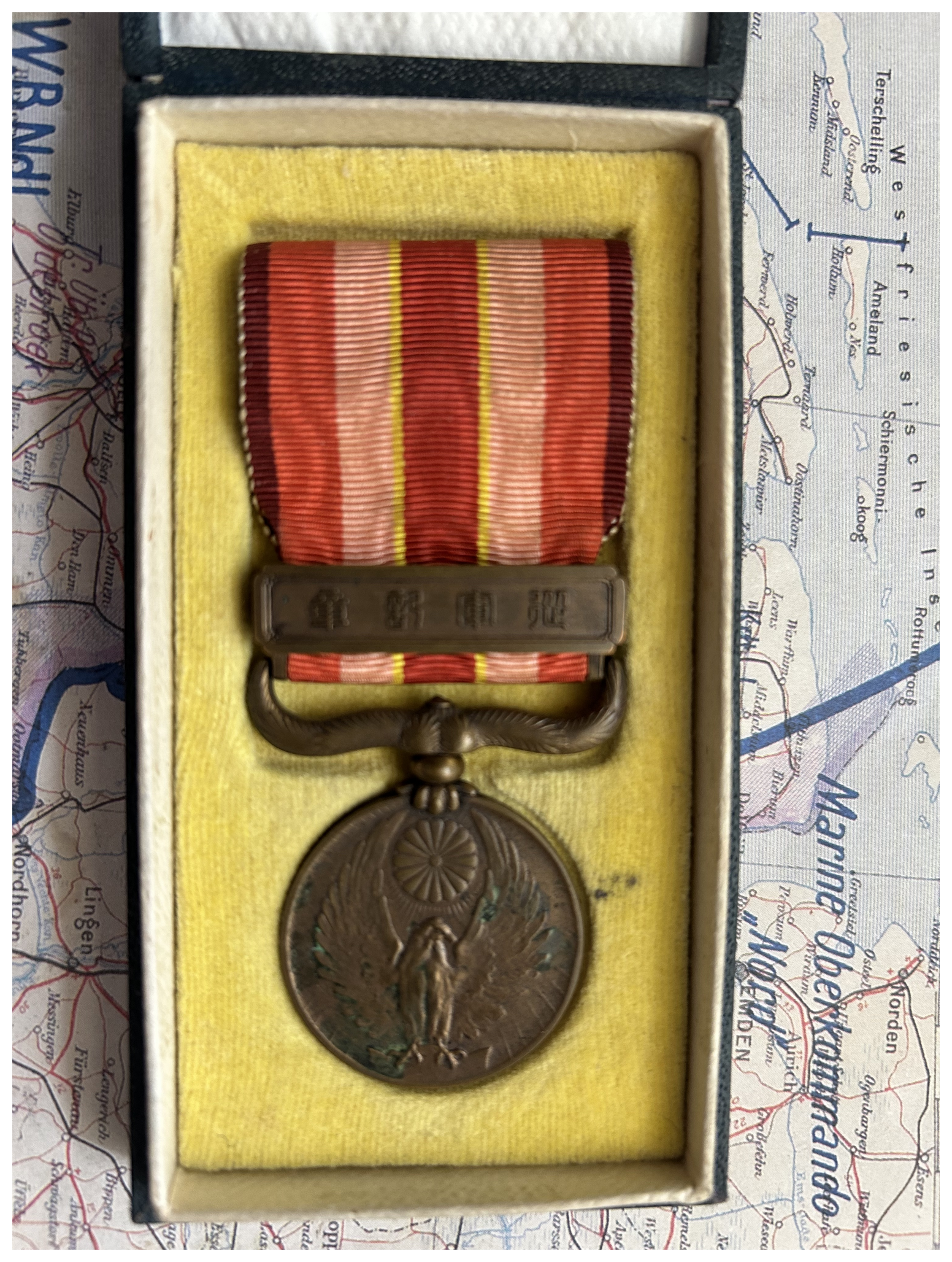 This common medal was awarded for service during the First Sino-Japanese War in 1931-34. Its companion medal may be seen here 1937-1945 China Incident Campaign Medal