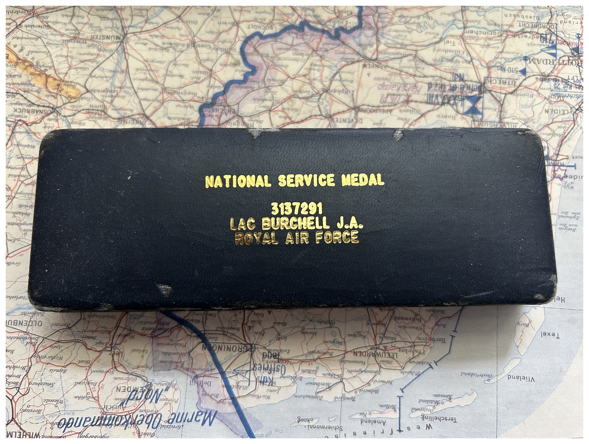 From the late 30’s until 1960 men in the UK were forced to undertake 18 months service in one of the branches of the armed forces. Because of the short duration of service those men did not qualify for an official service medal. In the late 90’s an entire industry grew around creating what is nicknamed “tin medals” so that the purchaser and correct some perceived oversight in official recognition. Usually I avoid these like the plague but this ones named to LAC 3137291 J.A.Burchell RAF. So in the sack it goes!