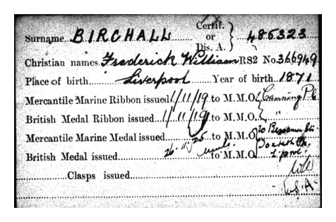This is a pretty humble medal that has had a hard life. This is the WW1 British War Medal, impressed to Frederick W. Birchall. Because of the lack of a unit or service number I suspected this was a merchant seaman award. 10 minutes on the British Archives and here he is. Frederick was born in 1871 in Liverpool and would therefore have been 43 when war broke out. His medals were forwarded to the Merchant Marine Office in Canning Place, Liverpool. He was also awarded the Merchantile War Medal, since lost to time. The War Medal here has the neck of its suspender broken as well as bad edge knocking and bruising. It probably sat in someones junk drawer for a few decades.