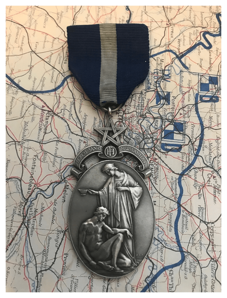 Along with the military medals, occasionally drifts a Masonic medal. This one is the 1930 Royal Masonic Hospital Charity Jewel from 1930. It was awarded to Worshipful Brother J. Birchall of the Robinson Lodge (2046) in Maidstone, Kent.