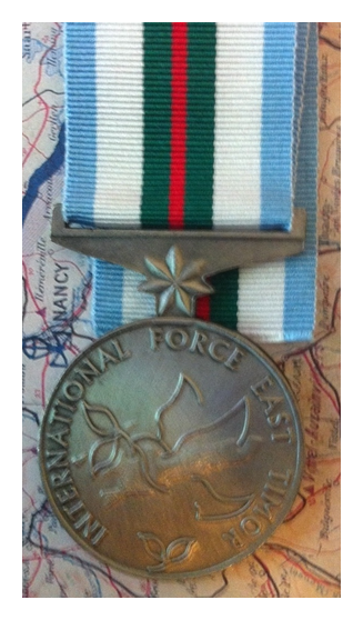 The International Force East Timor (INTERFET) Medal recognises members of the Australian Defence Force who served for 30 days (or 30 sorties) in East Timor during the INTERFET campaign (16 September 1999 – 10 April 2000). The qualifying area comprises East Timor and the sea adjacent to East Timor out to a distance of 12 nautical miles (22 km) from the low water mark.