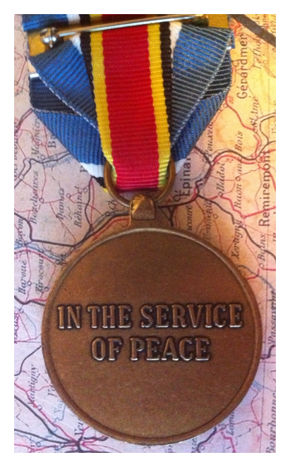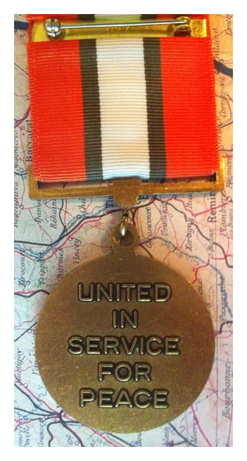 Canadian Peacekeeping Service Medal (French: Médaille canadienne du maintien de la paix) is a campaign medal created in 1988 to recognize the contributions of all Canadian Peacekeepers towards the ultimate goal of peace, after the United Nations Department of Peacekeeping Operations was awarded that year’s Nobel Peace Prize. Go Canada!