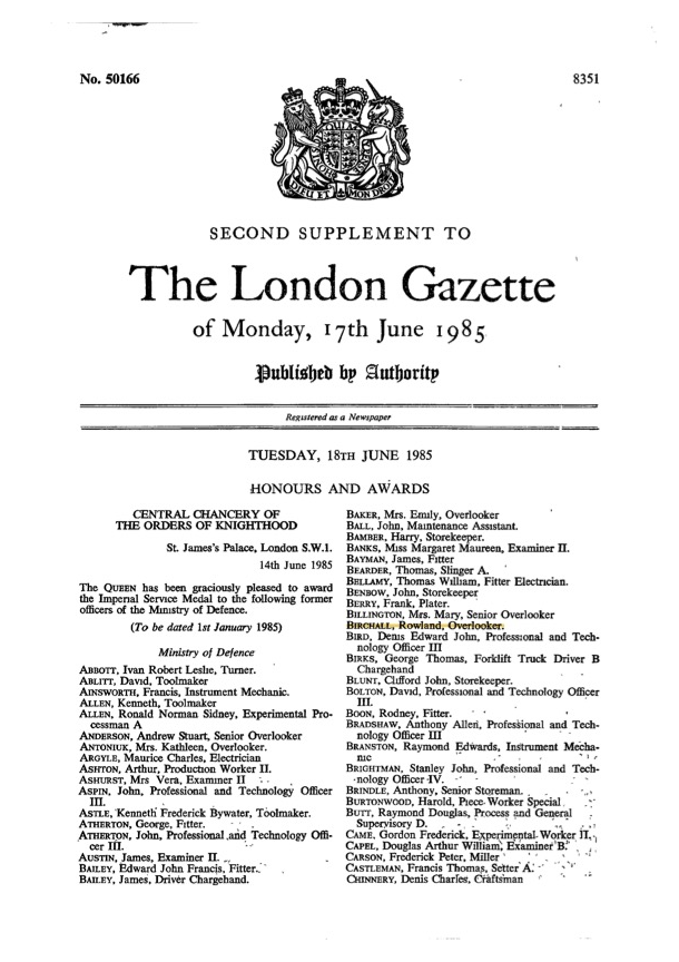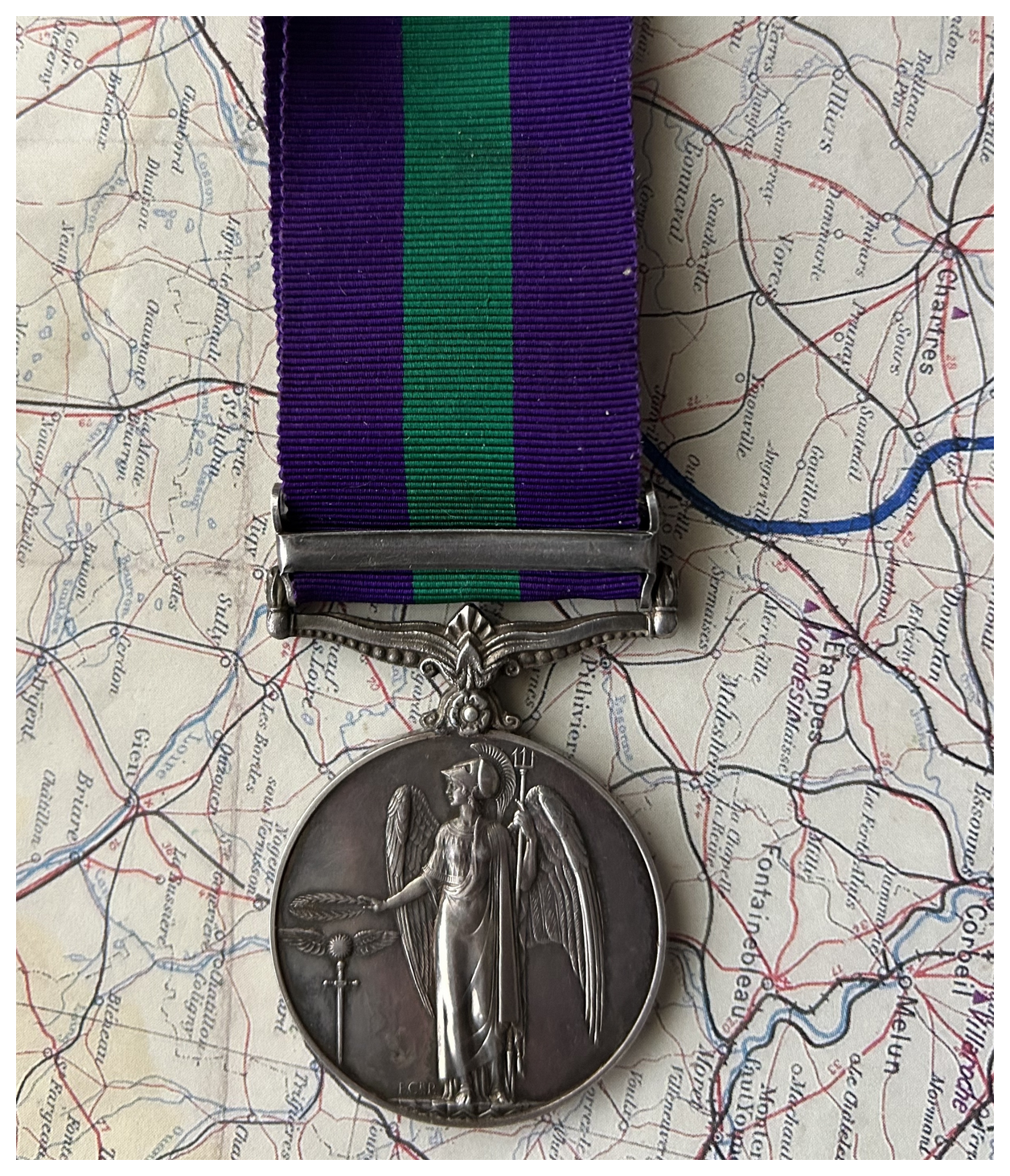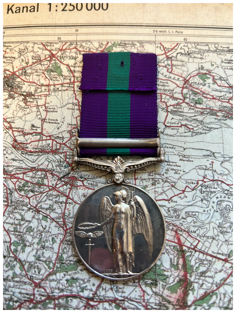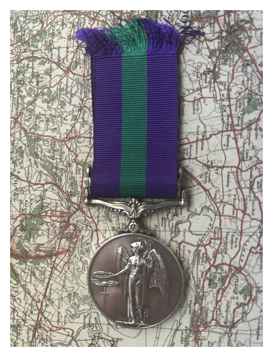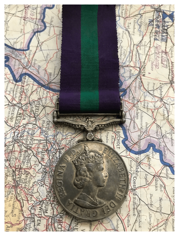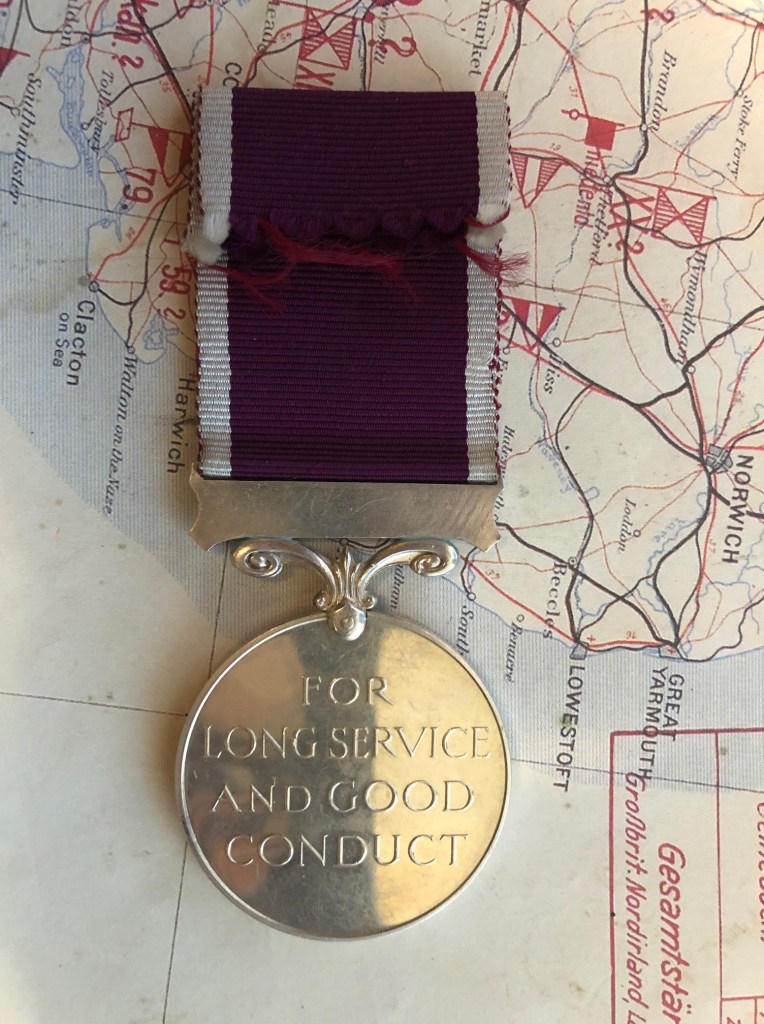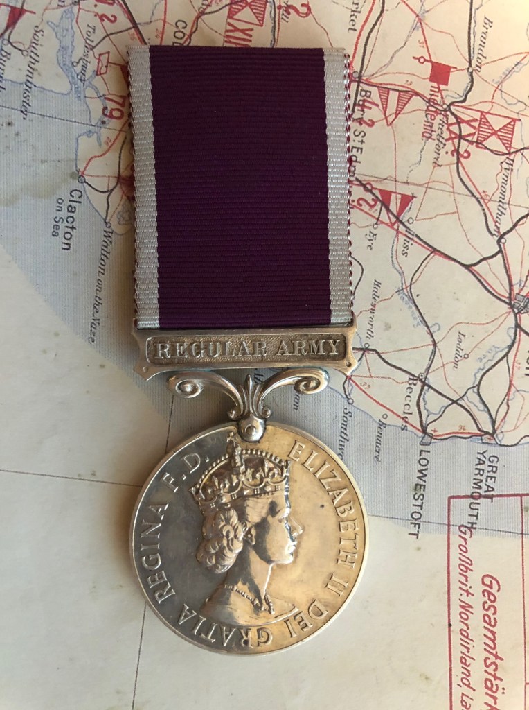 Surprising this week, after a drought of a few months, a plain old garden-variety British General Service Medal (1962). The recipient is Gunner R. Birchall 23381785, Royal Artillery. The lack of any of the 14 possible theatre bars means he didn’t deploy from the UK during his service.