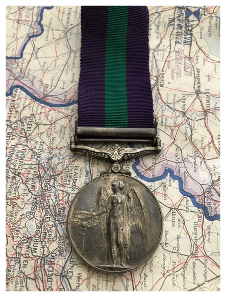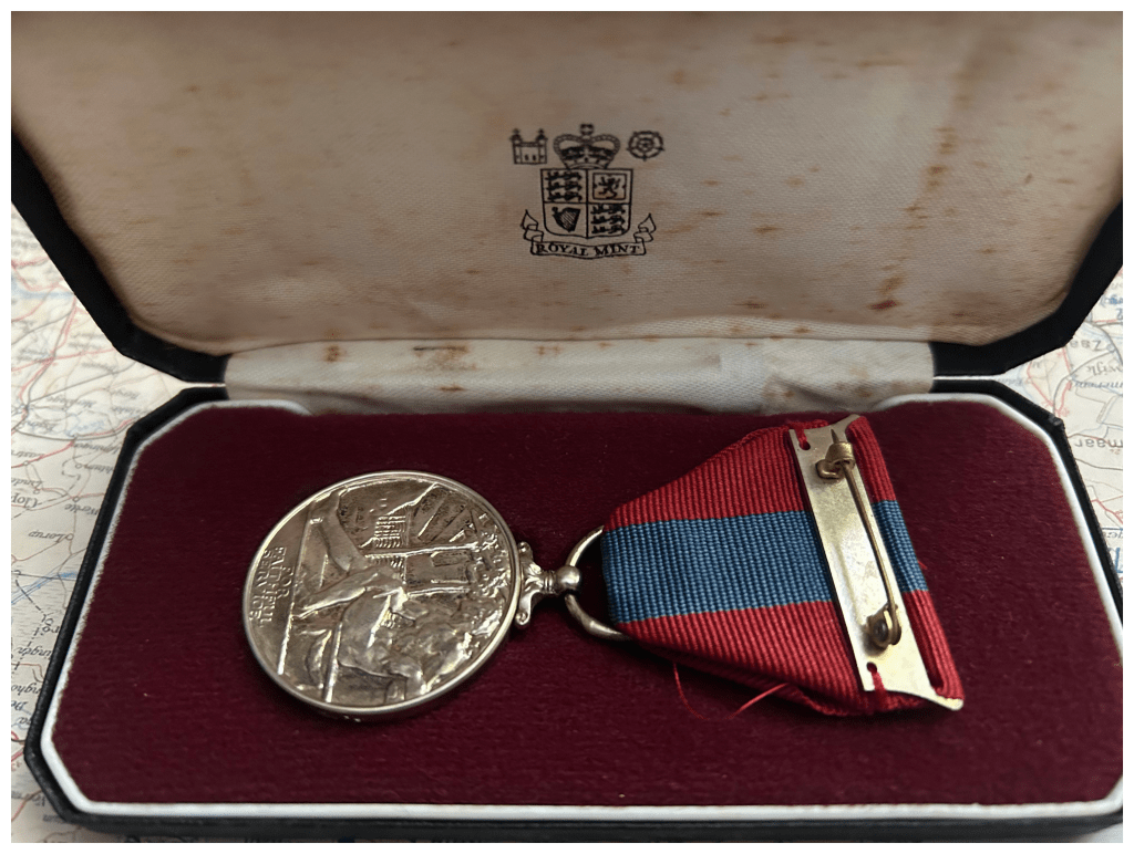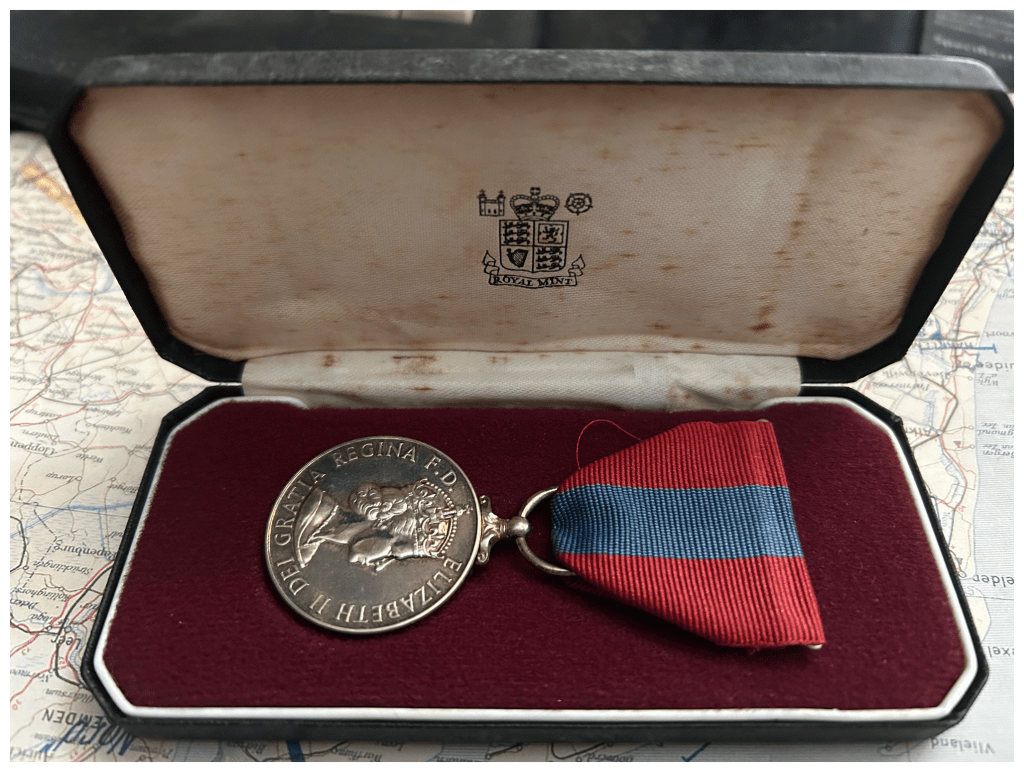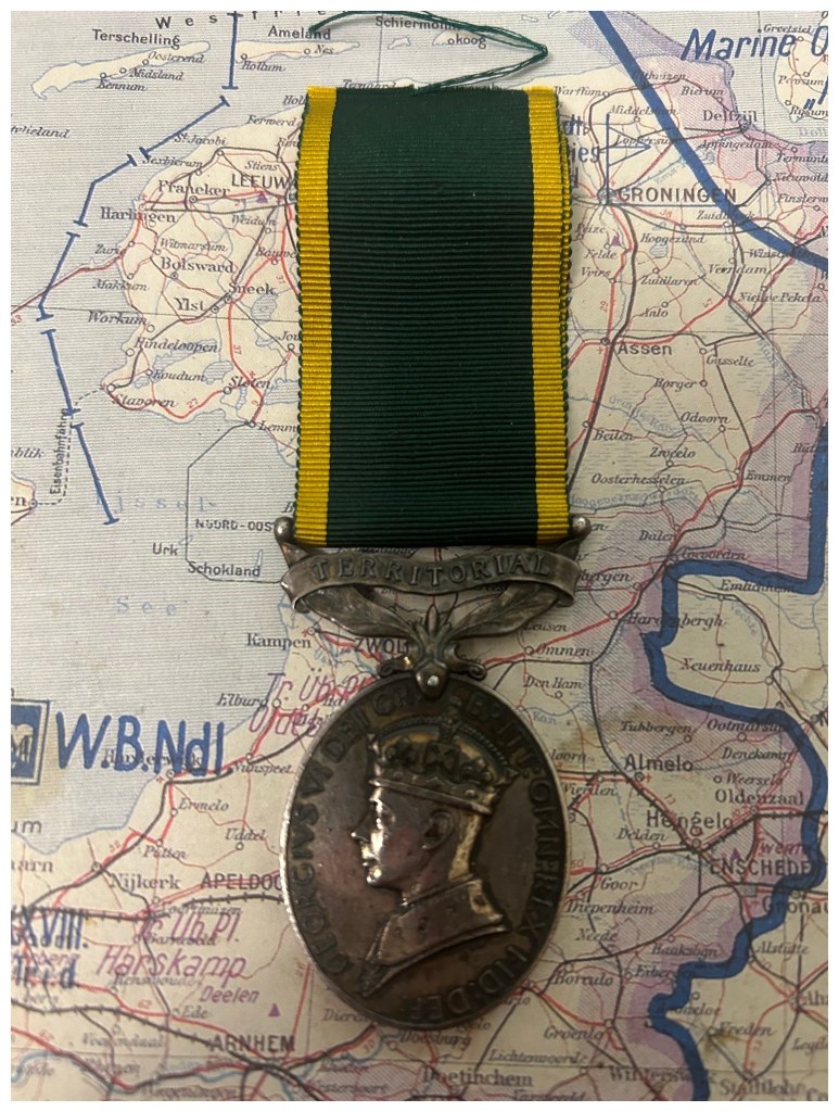 Frederick served in N.W. Europe, landing through Normandy with the Regiment in July, 1944. He fought through Belgium, the Roer and into Hamburg in 1945. After returning to the U.K., the Regiment was sent to Korea, where Frederick was awarded an MID as well as a short service commission as Lieutenant.