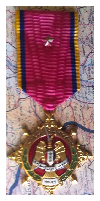 Instituted on 14 September 1945, this order was awarded for services in connection with the 9 September 1944 uprising, for outstanding services in the establishment of the People’s Republic of Bulgaria, and for bravery in action by officers and leaders of the People’s Army. Two divisions were created, a Military and a Civil Division, each having three classes. The Military Division can be recognized by its insignia having crossed swords. Two types of the order exist : a screw-back type and a ribboned one. The central medallion depicts a Bulgarian patriot, Vasil Levski.