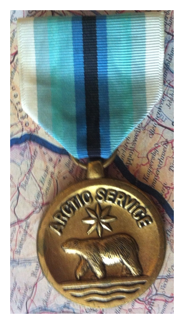 The Coast Guard Arctic Service Medal was established in 1976 by Admiral Owen W. Siler, USCG and is awarded to any member of the United States Coast Guard who performs twenty one days of consecutive duty afloat or ashore north of the Arctic Circle. The medal depicts a polar bear under the North Star, while the reverse side carries the Coast Guard Shield.