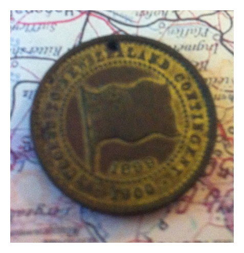 This token is very similar to this one here. However in this case, instead of a New Zealand flag there is a profile of a Maori warrior. In this example the date 1899-1900 is on the reverse. On the obverse are the words “British Transvaal War”.