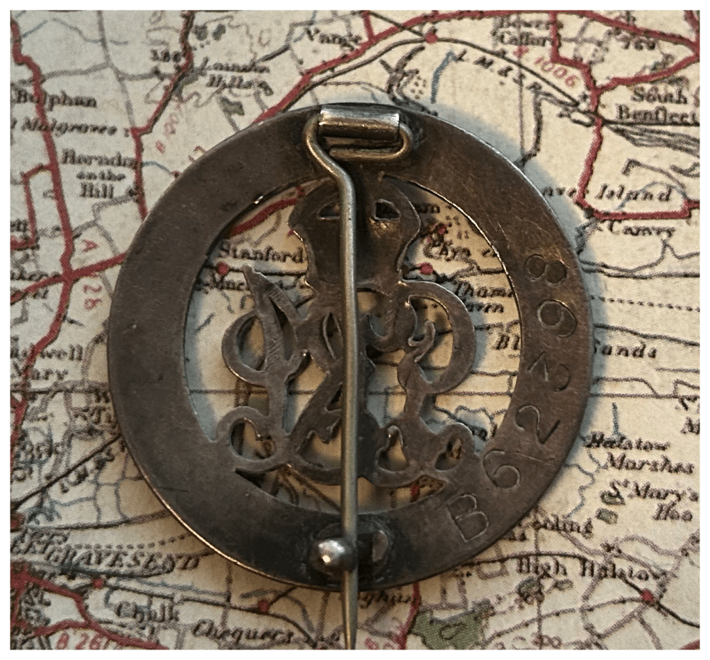 A simple one here. This is the Silver War Badge issued to 49532 Private Arthur John Birchall from the Lincoln Regiment. Arthur was captured at Kemmel on 15th April 1918 and held in Westfront and Friedrichsfeld POW Camp.