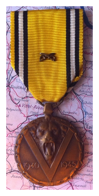 This medal was instituted on 12 February 1951 and could be awarded on either of three ribbons, depending on the type of defaulting the recipient had performed during the war.