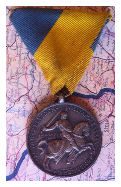 This Hungarian medal was struck to commemorate the incorporation of Siebenbürgen (perhaps better known as Transylvania) into Hungary, this medal in “war metal” was instituted on 1 October 1940. Transylvania was taken from Transylvania.