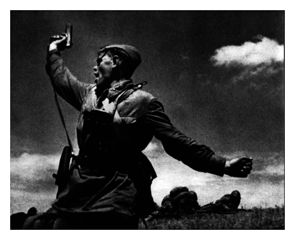 This Soviet WWII photograph was unidentified for 23 years until the man in it, Aleksey Gordeyevich Yeremenko, was recognized by his wife and children when they saw the photograph in Pravda. It remains one of the most iconic photographs of World War II. Yeremenko was a junior political officer serving with the 220th regiment of 4th Rifle Division. On July 12, 1942, the commander of his regiment fell during battle. Rallying his troops to the attack, Yeremenko stood and waved them on. Seconds after this photograph was taken, Yeremenko was shot dead.
